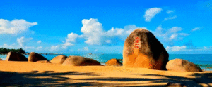 Tianya Haijiao (literally ‘edge of the sky, rim of the sea’) Tianya Haijiao, a romantic and beautiful scenic spot, lies to the west of Sanya City, Hainan Province. It receives many visitor