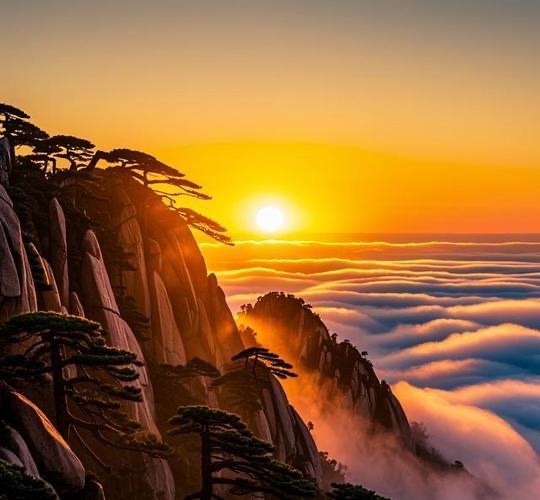Among all the famous mountains in China, Huangshan is perhaps the most renowned, located in the southern part of Anhui Province. It is celebrated for its breathtakingly unique natural scenery, comprising four major wonders: the Welcoming Pine, bizarre rocks, sea of clouds, and hot springs, as well as its towering peaks, unique pines, and glacial landscapes. The fairy-tale-like