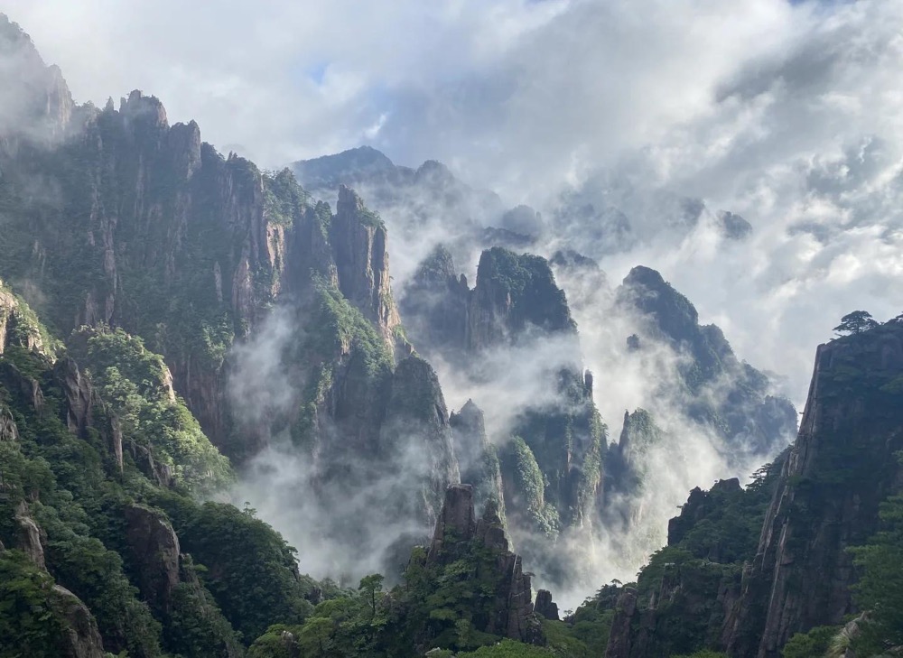 The Huangshan Scenic Area is primarily composed of six distinct scenic zones. Within the Yuping Scenic Zone, the majestic peaks, steep slopes, and ancient stone carvings are truly awe-inspiring. Additionally, there stands a venerable Welcoming Pine Tree. From Beihai to Songgu, the landscape features not only rugged peaks resembling dense forests but also lush pine and cypress trees, creating a breathtaking scene. The Hot Spring Scenic Area and Baiyun Scenic Area feature gurgling springs and majestic waterfalls, whose unique grandeur is truly breathtaking. The Yunju Scenic Area boasts a serene environment with relatively flat paths, making it an ideal destination for leisurely hikes in Huangshan.